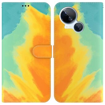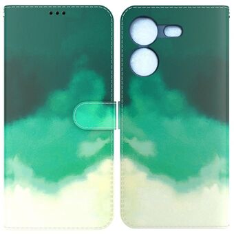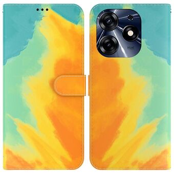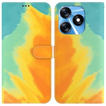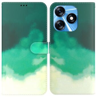 Για Tecno Spark 10 / Spark 10C Υδατογραφία μοτίβο Flip υπόθεση τηλεφώνου δέρμα (κυανό πράσινο)