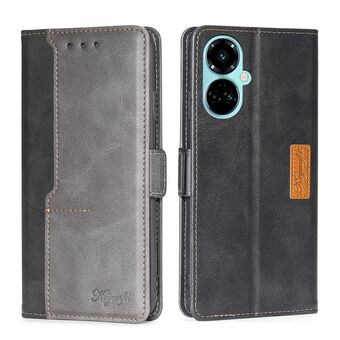 Για Tecno Pova 4 Pro Αντίθετο χρώμα πλευρά πόρπη δερμάτινη θήκη τηλεφώνου υπόθεση (μαύρο + γκρι)