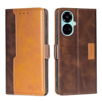Για Tecno Pova 4 Αντίθετο χρώμα πλευρά πόρπη δερμάτινη θήκη τηλεφώνου (σκούρο καφέ + χρυσό)