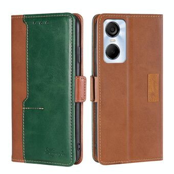 Για Tecno Camon 19 / 19 Pro αντίθεση χρώμα πλευρά πόρπη δερμάτινη θήκη τηλεφώνου υπόθεση (ανοιχτό καφέ + πράσινο)