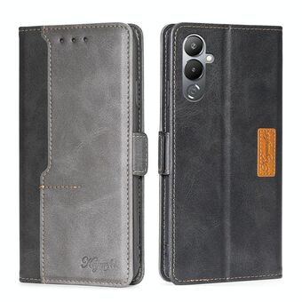 Για Tecno Camon 19 Neo αντίθεση χρώμα πλευρά πόρπη δερμάτινη θήκη τηλεφώνου (μαύρο + γκρι)