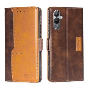 Για Tecno Pop 6 Pro Αντίθετο χρώμα πλευρά πόρπη δερμάτινη θήκη τηλεφώνου (σκούρο καφέ + χρυσό)