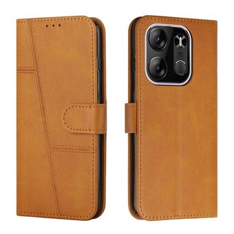 Για Tecno Pop 7 Pro Stitching μοσχάρι υφή πόρπη δερμάτινη θήκη τηλεφώνου (καφέ)
