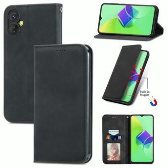 Για Tecno Spark 9 Pro Ρετρό δέρμα αίσθηση μαγνητική Flip δερμάτινη θήκη τηλεφώνου (Μαύρο)