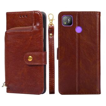Για Tecno Pop 4 φερμουάρ τσάντα δερμάτινη θήκη τηλεφώνου (καφέ)