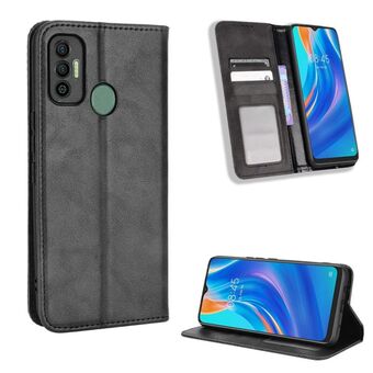 Για Tecno Spark 7 Μαγνητική πόρπη ρετρό υφή δερμάτινη θήκη τηλεφώνου (μαύρο)