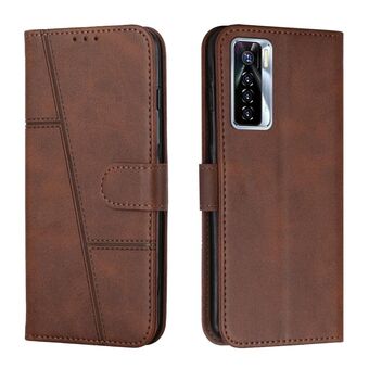 Για Tecno Camon 17 Pro ραφή μοσχάρι υφή πόρπη δερμάτινη θήκη τηλεφώνου (καφέ)