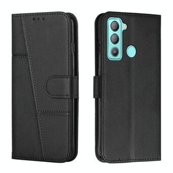 Για Tecno Spark 7 Pro Stitching μοσχάρι υφή Πόρπη δερμάτινη θήκη τηλεφώνου (μαύρο)