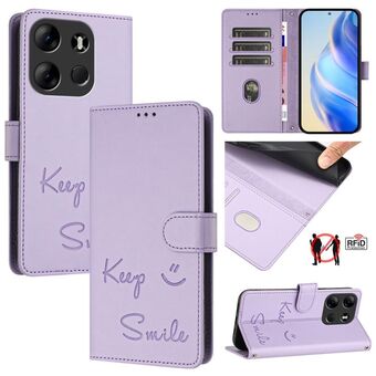 For Tecno Pop 7 / Pop 7 Pro Smile Embossing RFID Leather Phone Case(Light Purple)