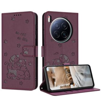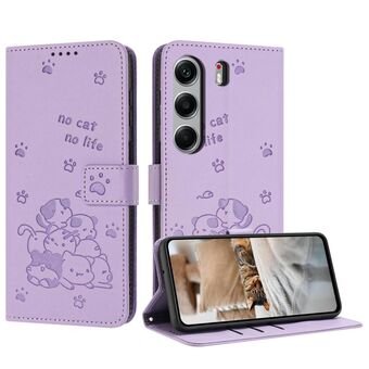 For Tecno Camon 40 4G Embossed Kitten Phone Leather Case with Lanyard(Purple)