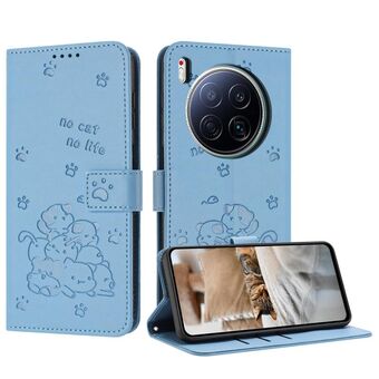 For Tecno Camon 40 4G Embossed Kitten Phone Leather Case with Lanyard(Blue)