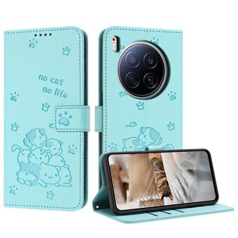For Tecno Camon 40 4G Embossed Kitten Phone Leather Case with Lanyard(Mint Green)