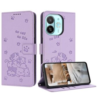 For Tecno Spark 30C 5G / Pop 9 5G Embossed Kitten Phone Leather Case with Lanyard(Purple)