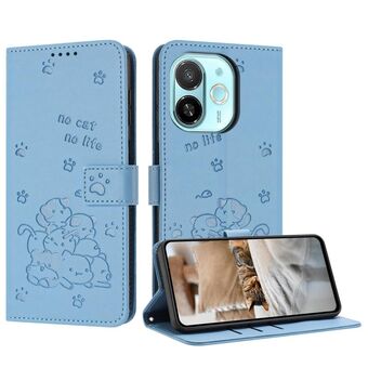 For Tecno Spark 30C 5G / Pop 9 5G Embossed Kitten Phone Leather Case with Lanyard(Blue)