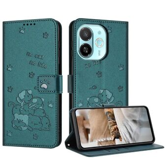 For Tecno Spark 30C 5G / Pop 9 5G Embossed Kitten Phone Leather Case with Lanyard(Dark Green)