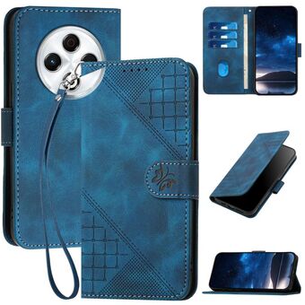 For Tecno Camon 40 4G Grid Butterfly Embossed Pattern Leather Phone Case with Lanyard(Dark Blue)