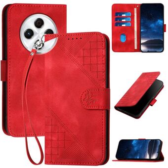 For Tecno Spark 30C 5G / Pop 9 5G Grid Butterfly Embossed Pattern Leather Phone Case with Lanyard(Red)