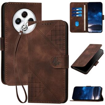 For Tecno Spark 30 Pro 4G Grid Butterfly Embossed Pattern Leather Phone Case with Lanyard(Coffee)