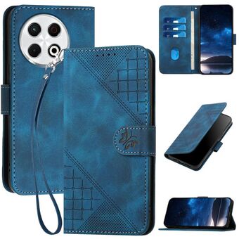 For Tecno Spark 30C 5G / Pop 9 5G Grid Butterfly Embossed Pattern Leather Phone Case with Lanyard(Dark Blue)