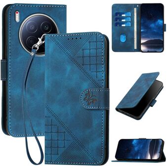 For Tecno Camon 40 Premier Grid Butterfly Embossed Pattern Leather Phone Case with Lanyard(Dark Blue)