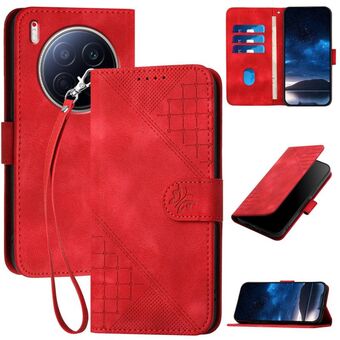 For Tecno Camon 40 Premier Grid Butterfly Embossed Pattern Leather Phone Case with Lanyard(Red)