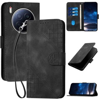 For Tecno Camon 40 Premier Grid Butterfly Embossed Pattern Leather Phone Case with Lanyard(Black)