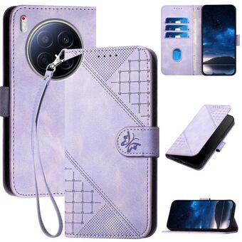 For Tecno Camon 40 4G Grid Butterfly Embossed Pattern Leather Phone Case with Lanyard(Light Purple)