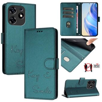 For Tecno Spark 20 Smile Embossing RFID Leather Phone Case(Peacock Green)