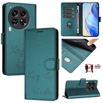 For Tecno Pova Neo 3 Smile Embossing RFID Leather Phone Case(Peacock Green)