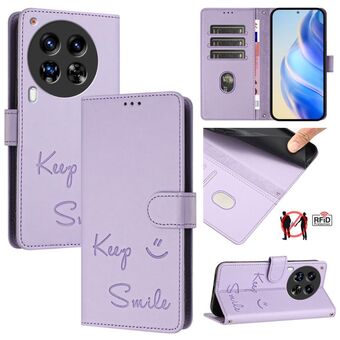 For Tecno Pova Neo 3 Smile Embossing RFID Leather Phone Case(Light Purple)