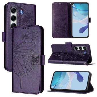 For Tecno Camon 40 Pro 4G Embossed Butterfly Leather Phone Case(Dark Purple)