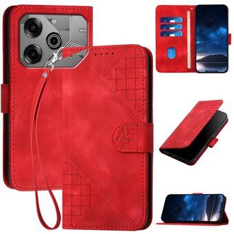 For Tecno Pova 6 5G / 6 Pro 5G Grid Butterfly Embossed Pattern Leather Phone Case with Lanyard(Red)