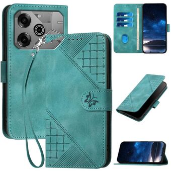 For Tecno Pova 4 Grid Butterfly Embossed Pattern Leather Phone Case with Lanyard(Coffee)