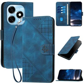 For Tecno Spark 20 4G / 20C 4G Grid Butterfly Embossed Pattern Leather Phone Case with Lanyard(Dark Blue)