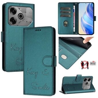 For Tecno Pova 6 Pro / Pova 6 5G Smile Embossing RFID Leather Phone Case(Mint Green)