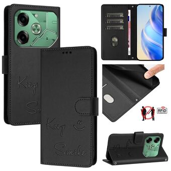 For Tecno Pova 6 4G Smile Embossing RFID Leather Phone Case(Black)