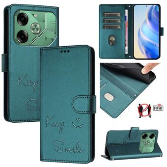 For Tecno Pova 6 4G Smile Embossing RFID Leather Phone Case(Peacock Green)