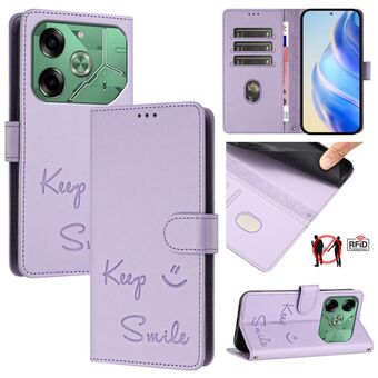 For Tecno Pova 6 Neo Smile Embossing RFID Leather Phone Case(Light Purple)