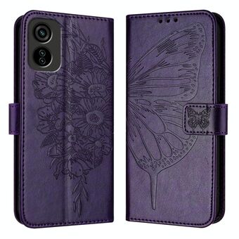 For Tecno Pova Neo 3 Embossed Butterfly Leather Phone Case(Dark Purple)