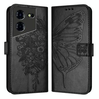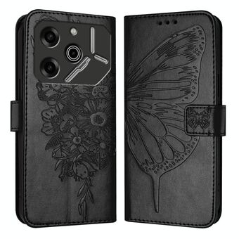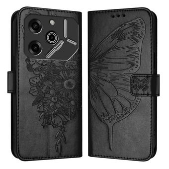 For Tecno Pova 6 5G Embossed Butterfly Leather Phone Case(Black)