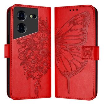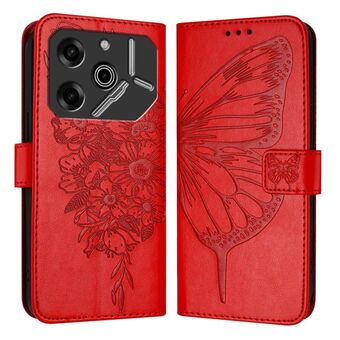 For Tecno Pova 6 5G Embossed Butterfly Leather Phone Case(Red)