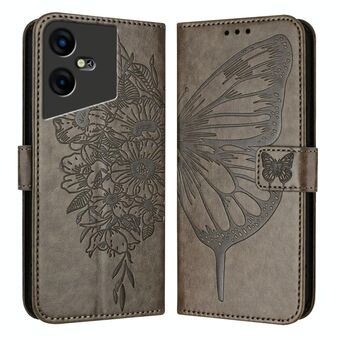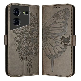For Tecno Pova Neo 3 Embossed Butterfly Leather Phone Case(Grey)