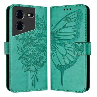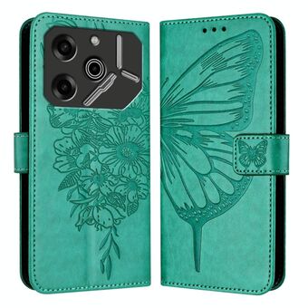 For Tecno Pova 6 Pro Embossed Butterfly Leather Phone Case(Green)