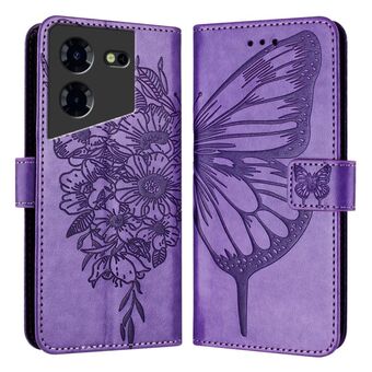 For Tecno Pova 6 Pro Embossed Butterfly Leather Phone Case(Dark Purple)