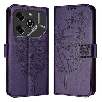 For Tecno Pova 6 5G Embossed Butterfly Leather Phone Case(Dark Purple)