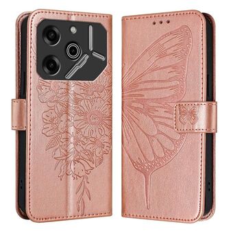 For Tecno Pova 6 5G Embossed Butterfly Leather Phone Case(Rose Gold)