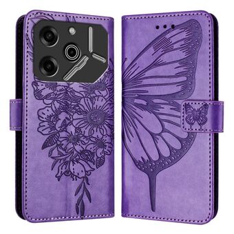 For Tecno Pova 6 5G Embossed Butterfly Leather Phone Case(Light Purple)