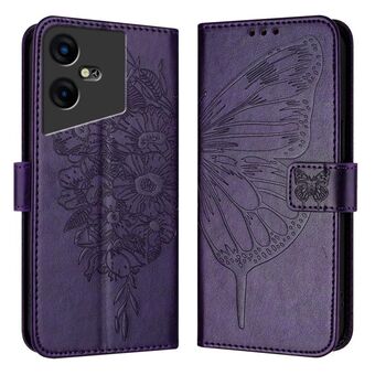 For Tecno Pop 6C / Itel A18 Embossed Butterfly Leather Phone Case(Dark Purple)