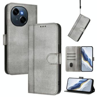 For Tecno Spark Go 1S / Go 2025 Line Splicing Buckle Retro Leather Phone Case(Grey)