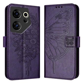For Tecno Camon 20 Pro 5G Embossed Butterfly Leather Phone Case(Dark Purple)